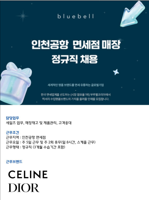 일반서비스 2025 인천공항 면세점 매장 정규직 채용