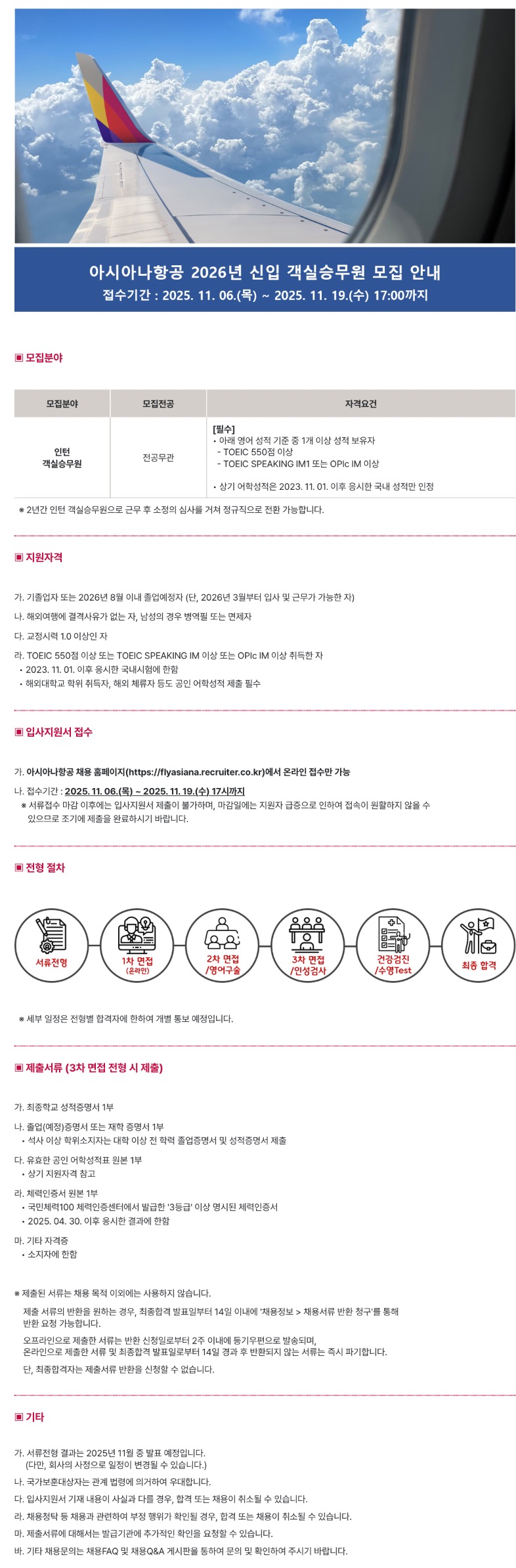항공서비스 2025년 하반기 아시아나항공 객실승무원 모집