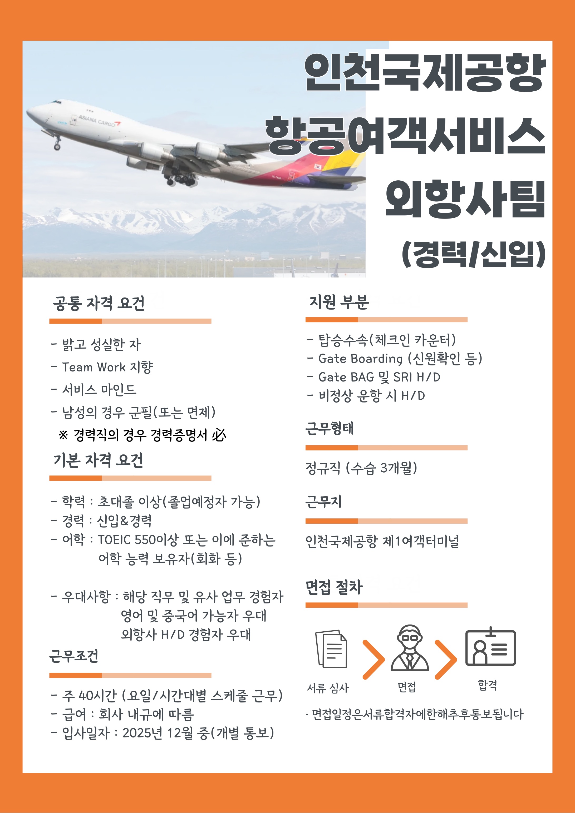 항공서비스 2025 인천국제공항 향공여객서비스 외항사팀 채용 안내