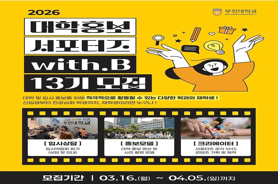 ⭐ 2026학년도 부천대학교 대학홍보 서포터즈 with.B 13기를 모집합니다! 📹🎨