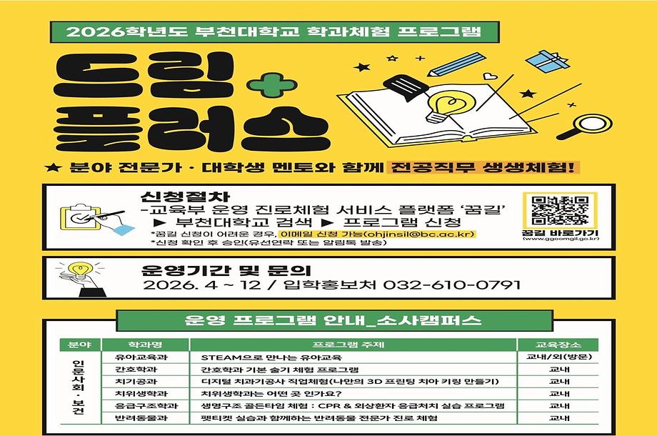 ✨ 2026학년도 부천대학교 학과체험 프로그램 드림플러스 Dream+ 🌟