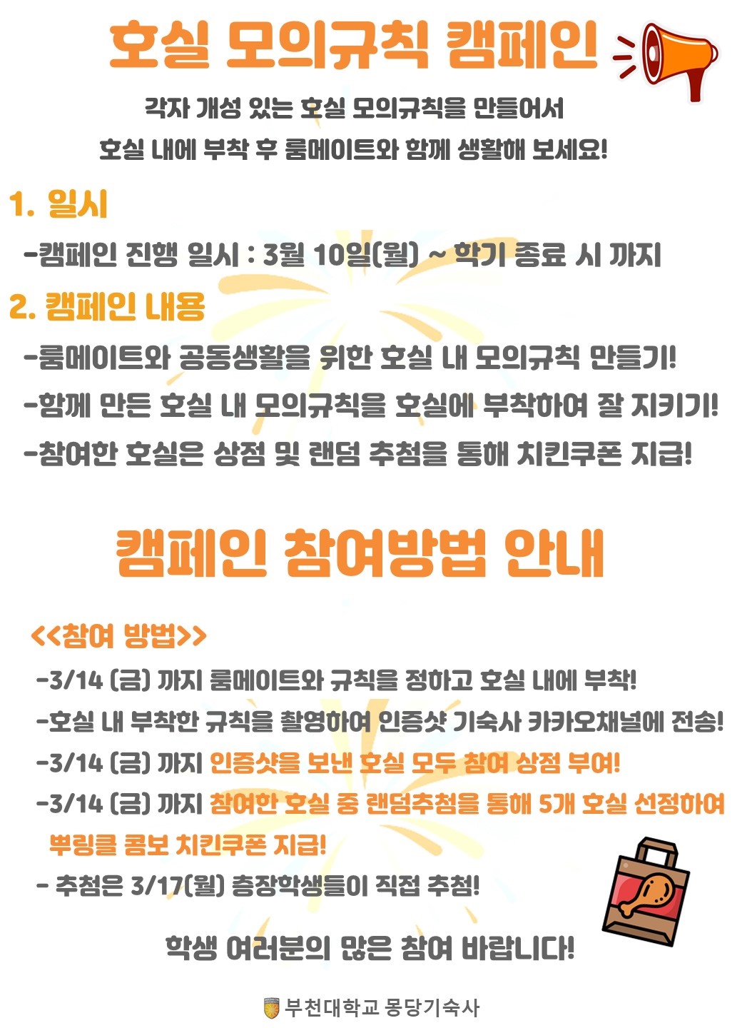 부천대 기숙사 호실 모의규정 이벤트 안내