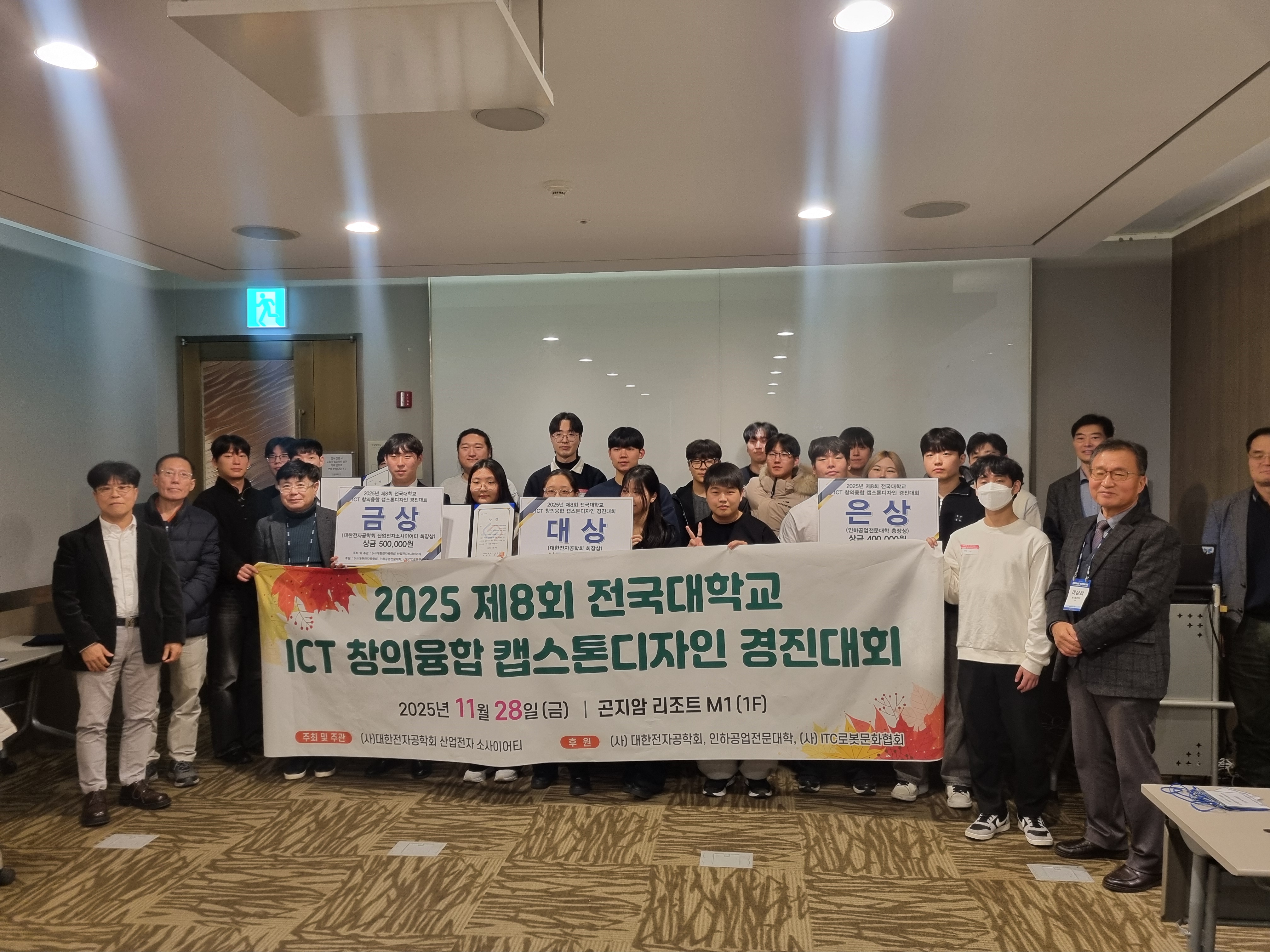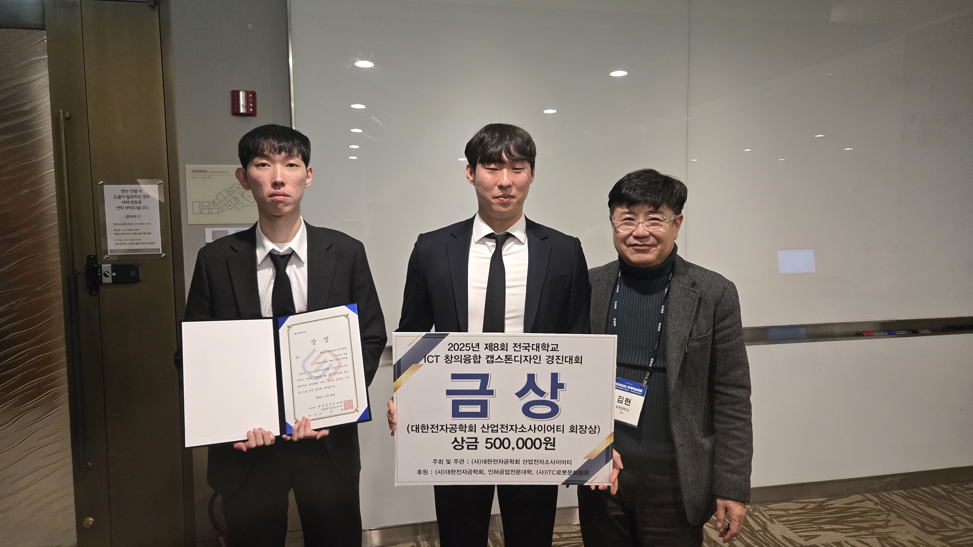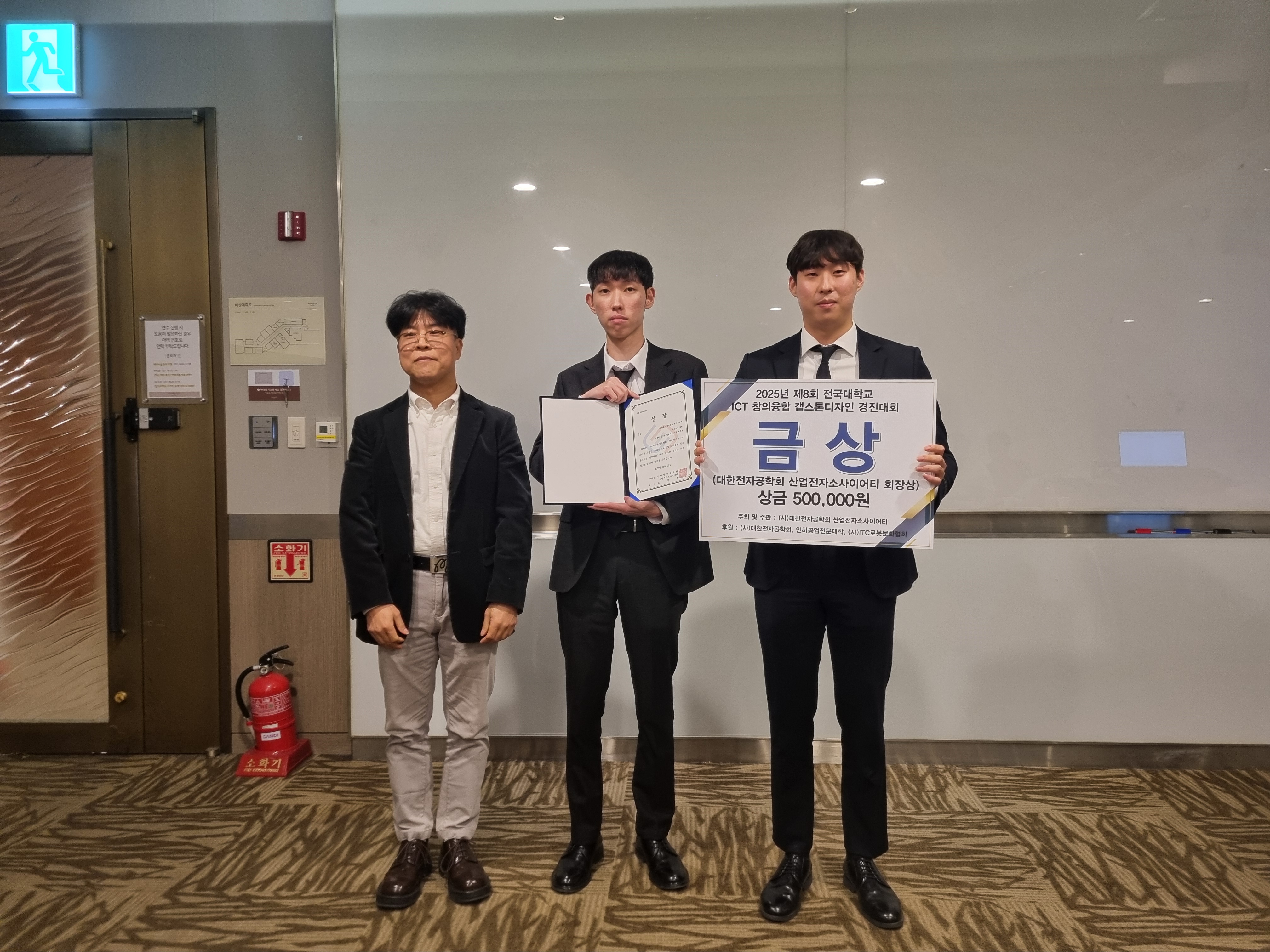전자공학과 2학년 김동찬, 김효현 학생이 2025년 제8회 전국대학교 ICT 창의융합 캡스톤디자인 경진대회에서 금상을 수상하여 이를 소개합니다.