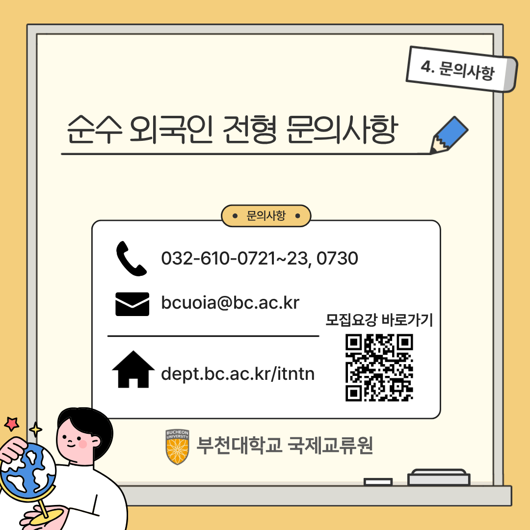 부천대학교 입학을 희망하는 외국인 학생들은 모집 일정에 맞춰 국제교류원 사무실로 서류를 제출해 주세요📄💼