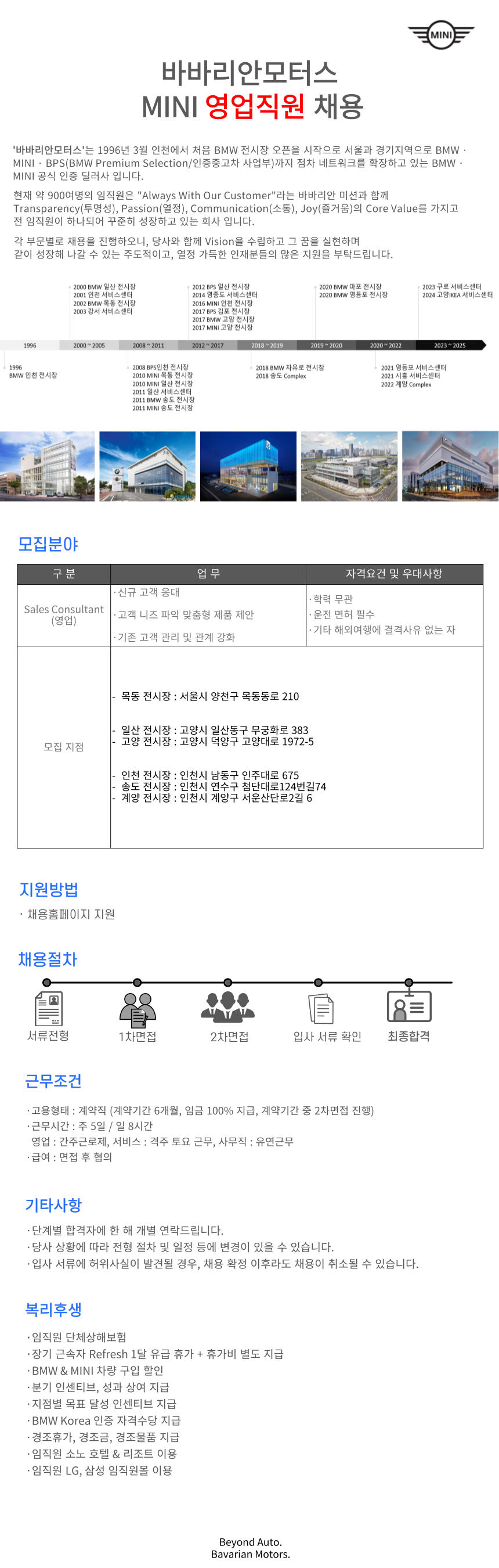 ✓ 지원방법 1. 바바리안모터스 채용사이트 접속 (https://bavarian.recruiter.co.kr/career/home) 2. 이력서 작성후 제출
