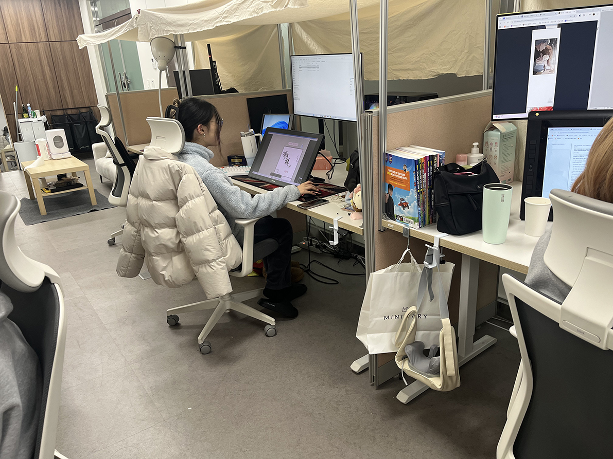 국가근로 취업연계장학사업으로 2학년 A반 학생들이 여름방학 겨울방학 4달동안 웹툰융합센터 내 웹툰플랫폼 회사인 주)비숑스튜디오 4명, 웹툰배경 회사인 주)수요일오전 1명, 부천시 애니메이션,웹툰 회사 주)엠케이이엔티에서 4명, 구로구 애니메이션 회사 주)디지탈이메이션에서 4명, 서울시 AI 웹툰 플랫폼 회사 주)툰스퀘어에서 3명 근무하고 있으며, B반 학생들이 주)썸니즈, 주)앱틴플래닛, 주)잭스트리 등 콘텐츠 회사에서 620시간정도 인턴십 학생으로 한달기준 1,955,200원의 한국장학재단 장학금을 지급받아 근무하고 있으며 우수학생은 졸업후 해당기관에 취업 연계 예정입니다.